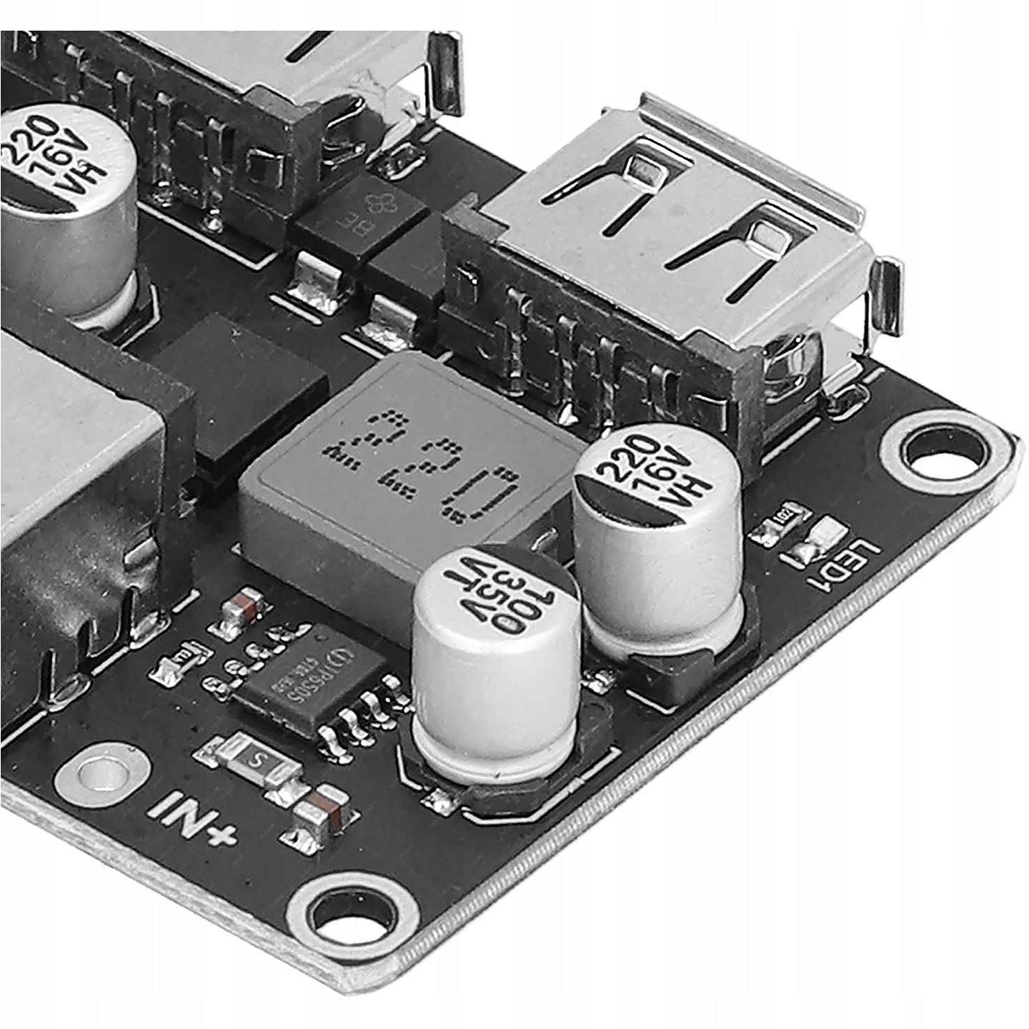 This DC-to-DC buck converter reduces the voltage it receives from 6V to 32V to a lower output voltage, typically 5V. It can also automatically adjust the output voltage between 3V and 12V when fast charging is activated. As a result, it can provide up to 24W of power (for example, 5V at 3.4A, 9V at 2.5A, or 12V at 2A), depending on the input and output voltage settings. Additionally, this module has several protective features, such as protection against high or low input voltage, over-current issues, short circuits, and overheating. These features make it suitable for a wide range of applications. Compared to the popular three-terminal linear regulators, this module operates more efficiently as a switch-mode power supply, especially when dealing with higher input voltages.