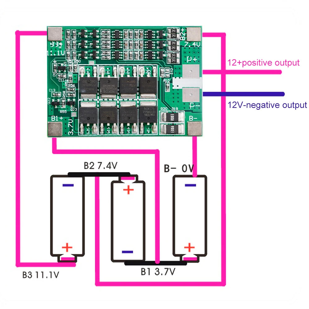 5. Connect the board to the lithium battery in the order of B0, B1, B2, B+